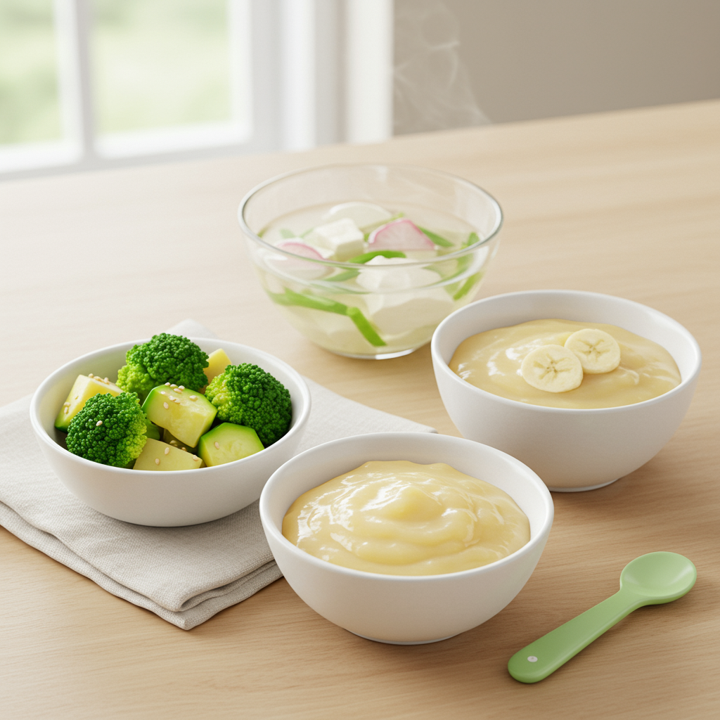 - 재료: 애호박, 브로콜리, 감자 등 소화 잘되는 채소 적당량