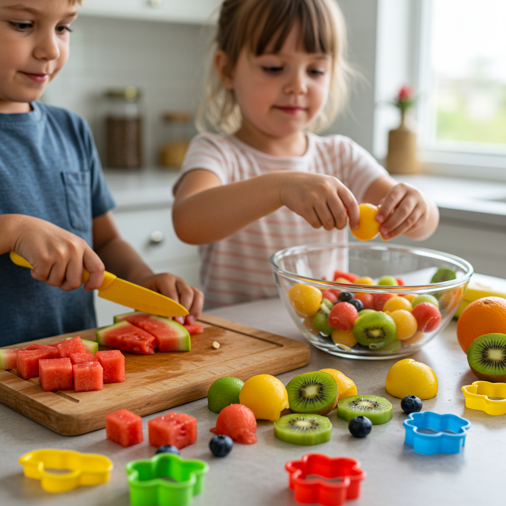 아이들에게 직접 과일을 씻고, 안전한 칼로 썰어보게 하거나, 예쁜 모양 틀로 찍어보게 해주세요. 직접 만든 음식은 더 맛있게 느껴지는 법이죠! 🧑🍳